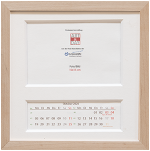 Kalender in Massivholz in der Größe 20x20 cm zum Einlegen von Bildern im Format 15x15 inkl. Kalendarium ab heute bis Ende 2025 (Lieferung ohne Bild)